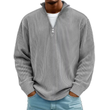 Casual Ribbed Stand Collar Zipper Corduroy Long Sleeve Gray 2XL