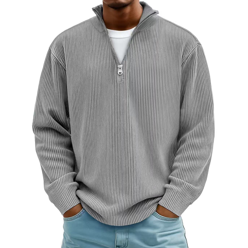 Casual Ribbed Stand Collar Zipper Corduroy Long Sleeve Gray XL