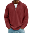 Casual Ribbed Stand Collar Zipper Corduroy Long Sleeve Wine Red 3XL