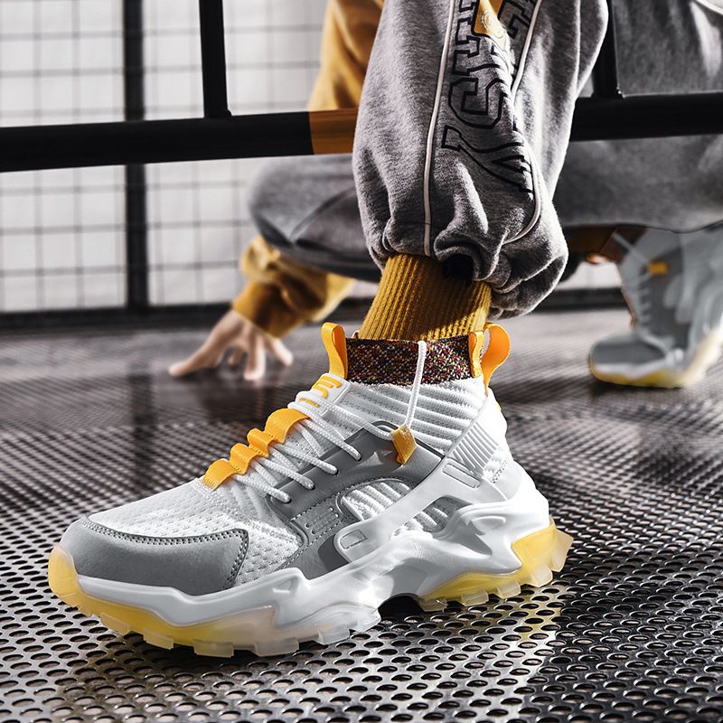 Casual Shoes Korean Students Breathable Sports Shoes National Trend White yellow 41