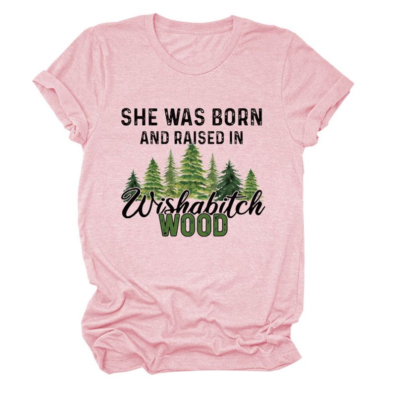 Casual Short-sleeved Round Neck T-shirt Tops Pink black color XL