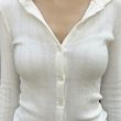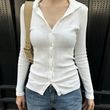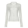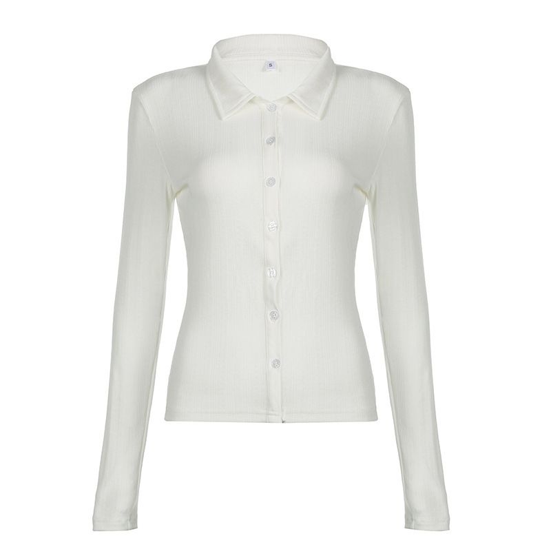 Casual Simple Slim-fit Single-breasted Cardigan Polo Collar Long Sleeve T-shirt White S