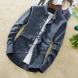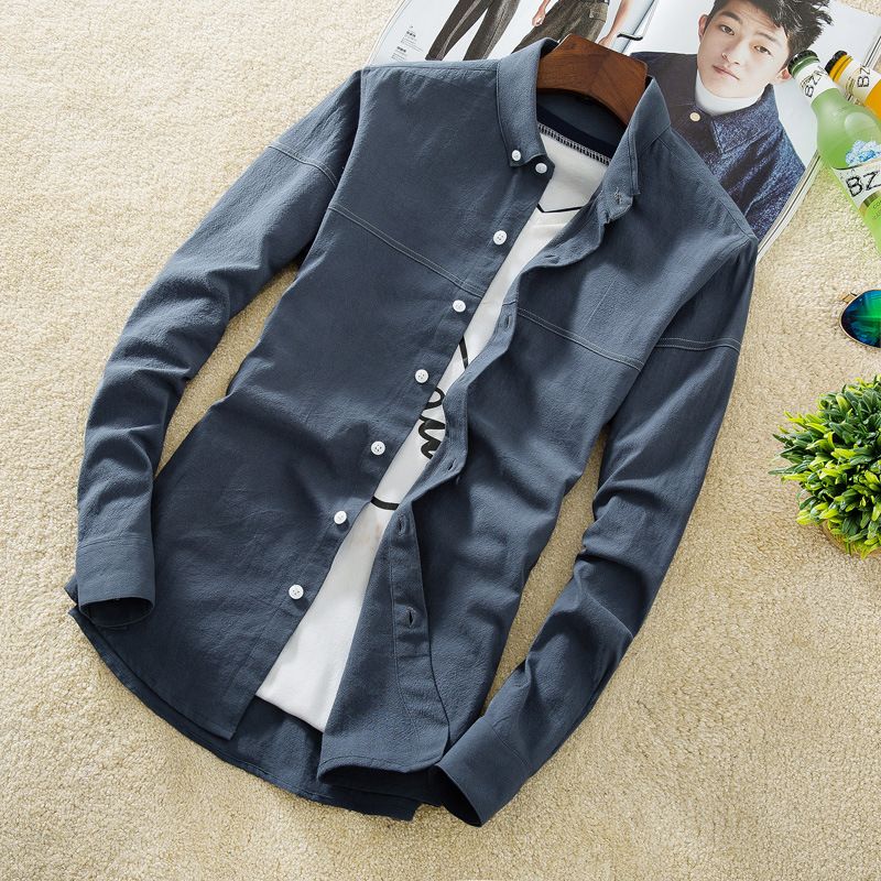 Casual solid color long-sleeved shirt men's shirt Navy blue L