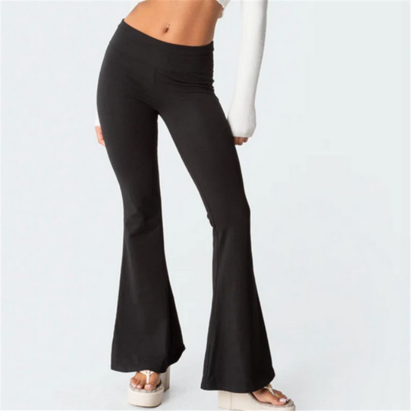 Women's Spring Summer Bell Bottom Pants High Waisted Stretch Slimming Solid Color Flared Pants