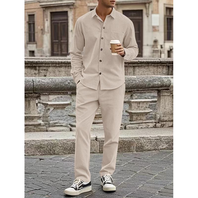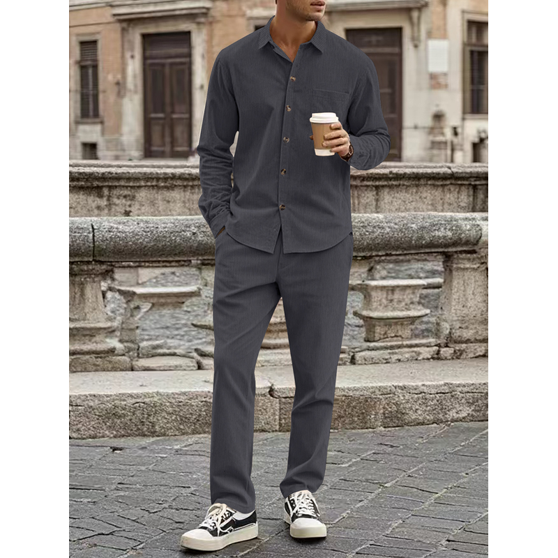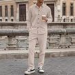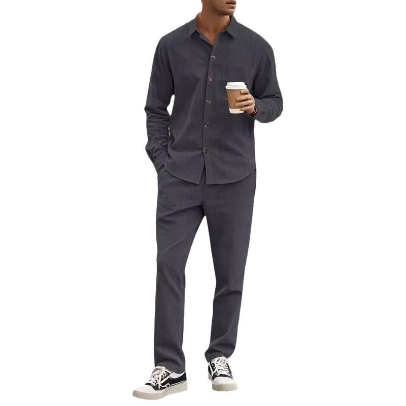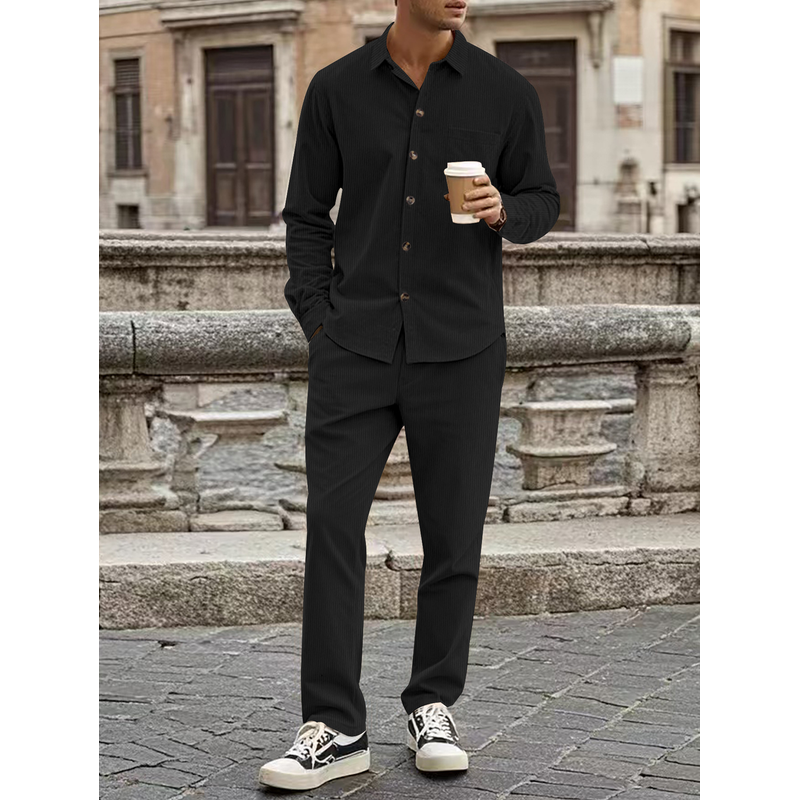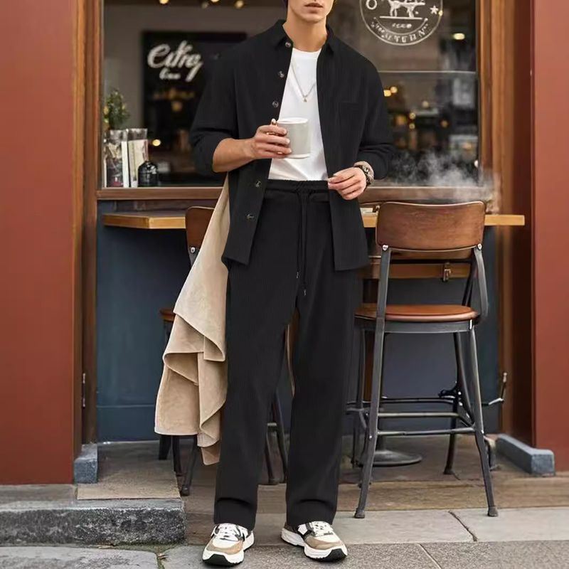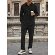 Casual Sports Lapel Long Sleeve Button Cardigan Trousers Black XL