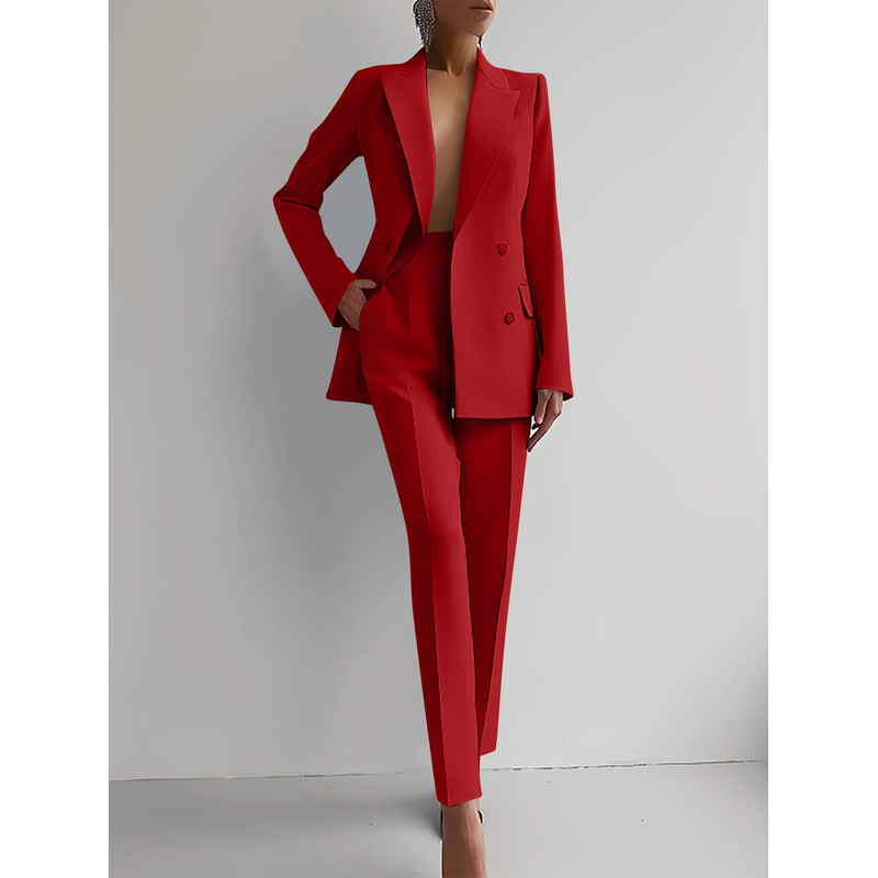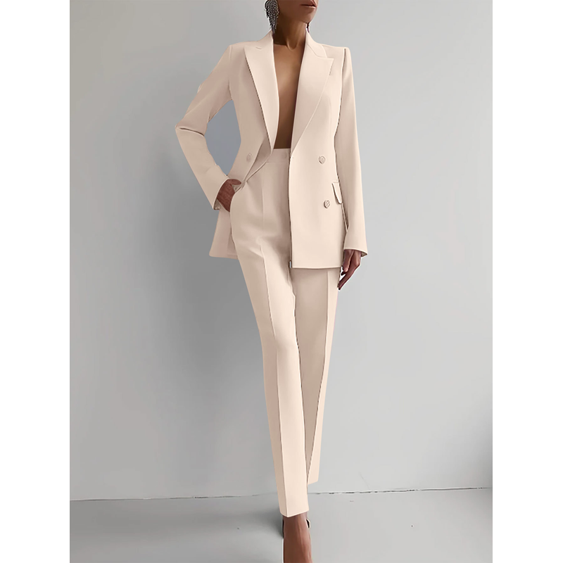 Casual Suits Fashion Long Sleeve Single-breasted Jacket Top And Slim Fit Trousers Women's Business Suits Apricot S