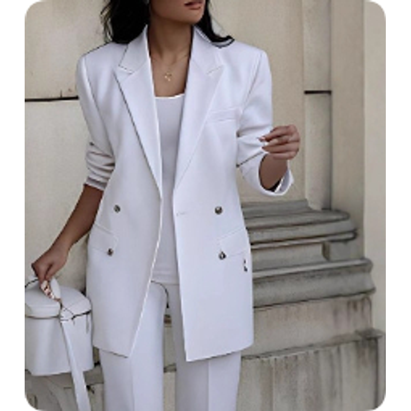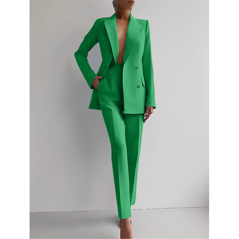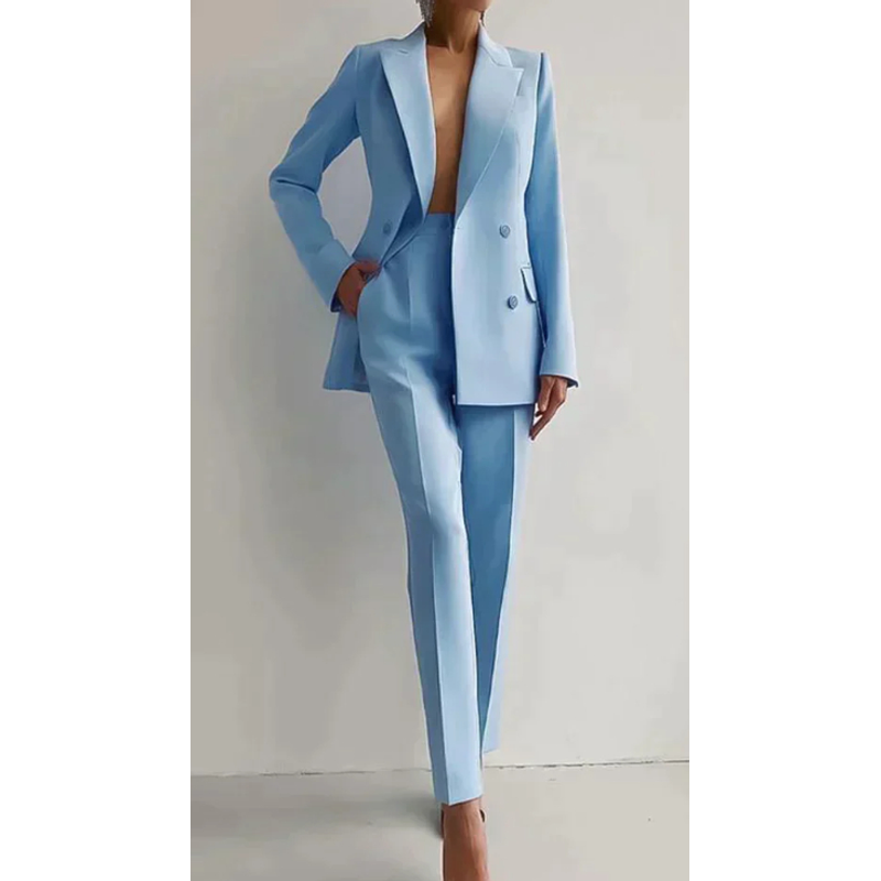 Casual Suits Fashion Long Sleeve Single-breasted Jacket Top And Slim Fit Trousers Women's Business Suits Sky Blue L