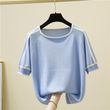Casual Thin Knitted T-Shirt Camisetas Mujer Summer Short Sleeve Tops Elegant Woman Clothes Striped Fashion Tee Shirt Femme 18841
