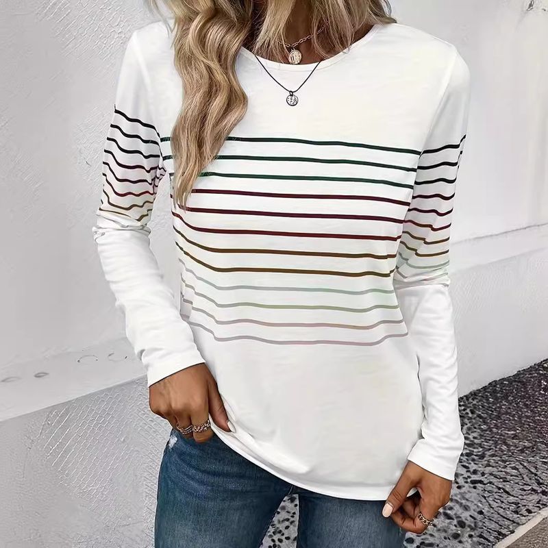 Casual Thin Striped Drop-shoulder Short Sleeve T-shirt Milky White S