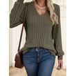 Casual V-Neck Knit Fabric Long Sleeve T-Shirt For Women In Solid Colo