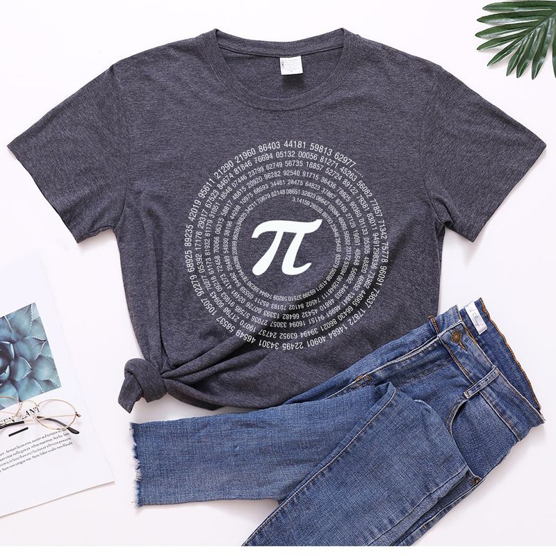 Casual Women's Digital Print Short Sleeve Loose T-shirt Dark Grey 2XL