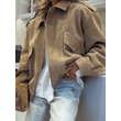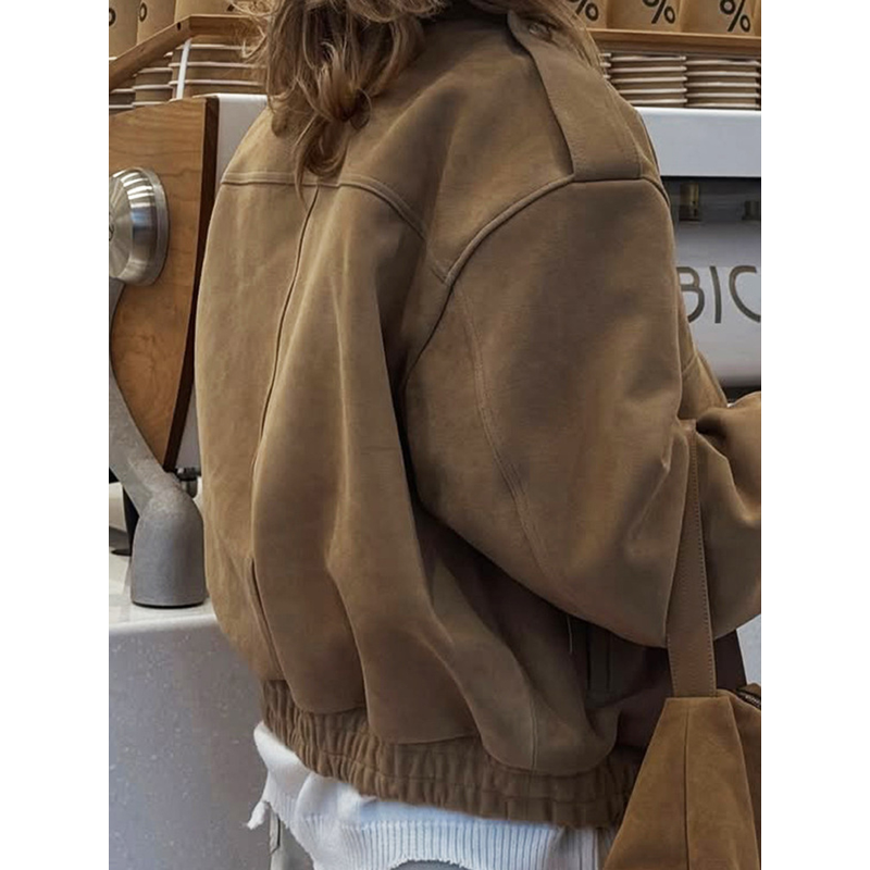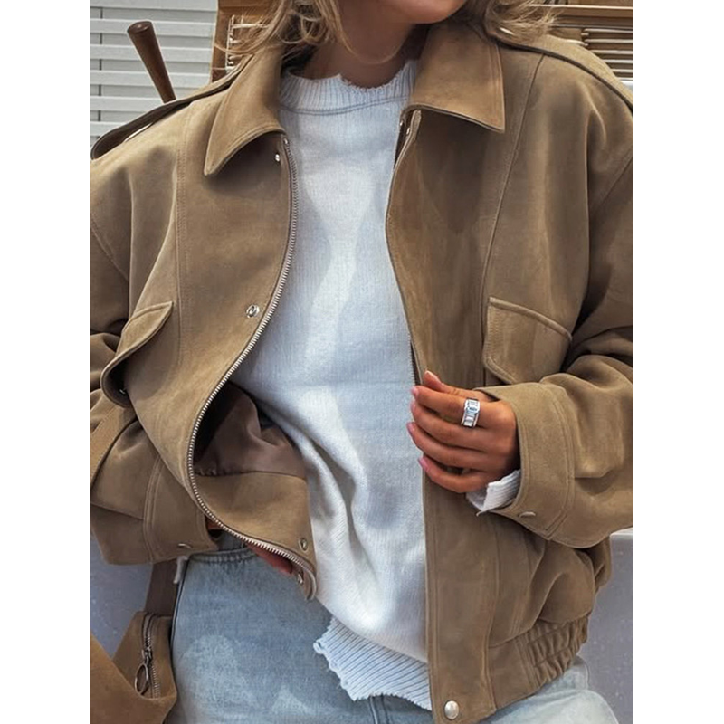 Casual Women's Suede Bomber Jackets Loose Lapel Zipper Long Sleeve Pockets Female Coats 2025 Autumn Lady Commute Outwear New