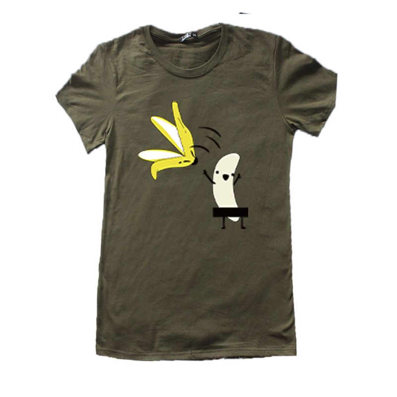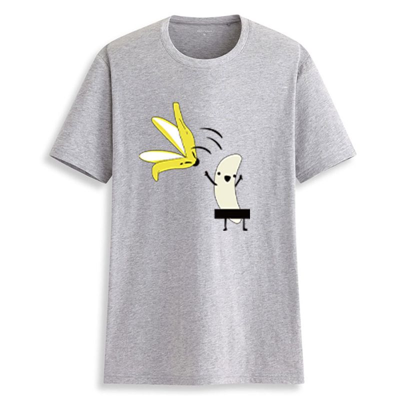 Casual Women's T Shirt Banana Cartoon Print Short Sleeve Grey 2XL
