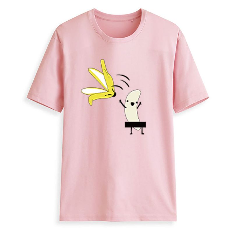 Casual Women's T Shirt Banana Cartoon Print Short Sleeve Pink XL
