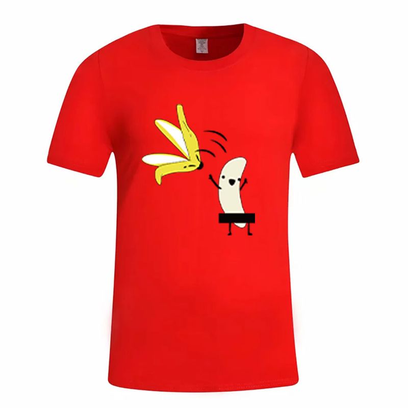 Casual Women's T Shirt Banana Cartoon Print Short Sleeve Red 2XL