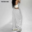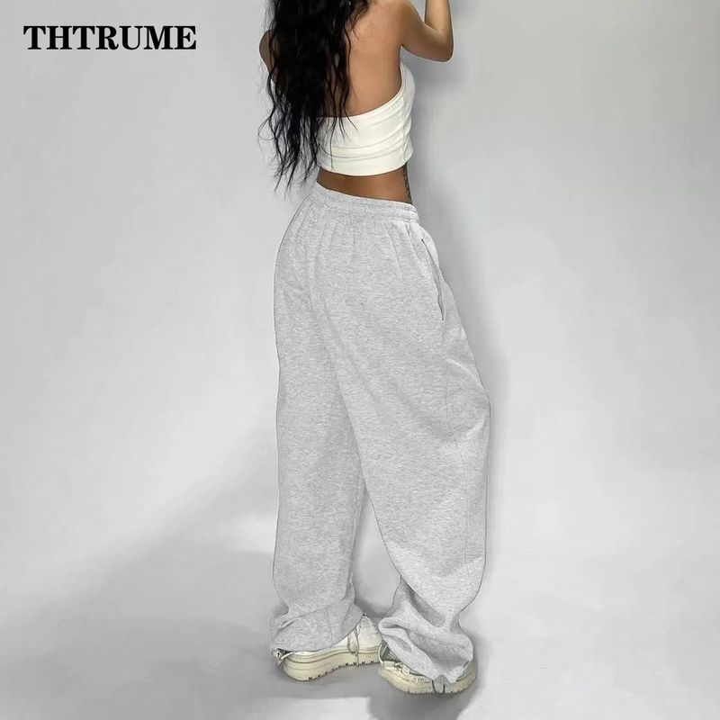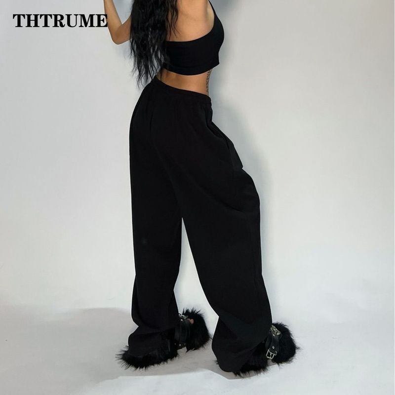 Casual Women Solid New Pant Fashion Summer Oversized Vintage Pocket Drawstring Wide Leg Pants Elegant Loose Baggy Chic Trousers