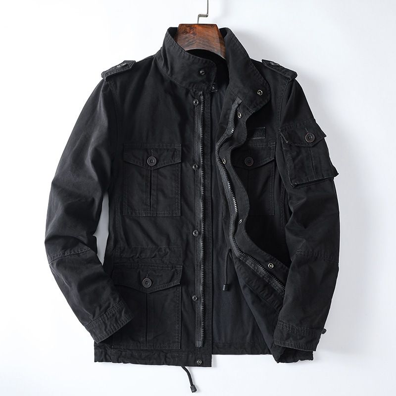 Casual Youth Jacket Loose Zip Men's Coat Black 5XL