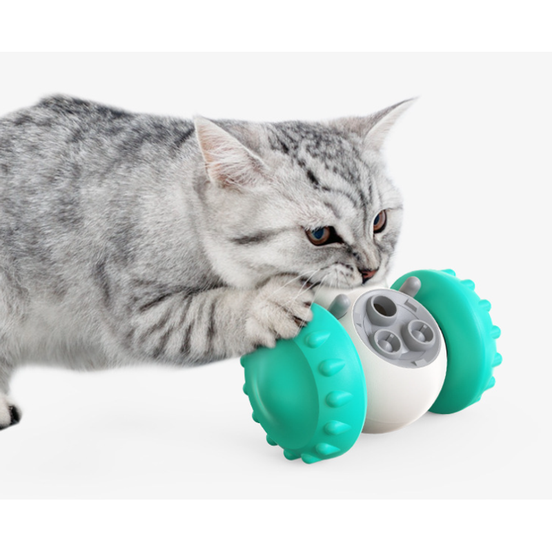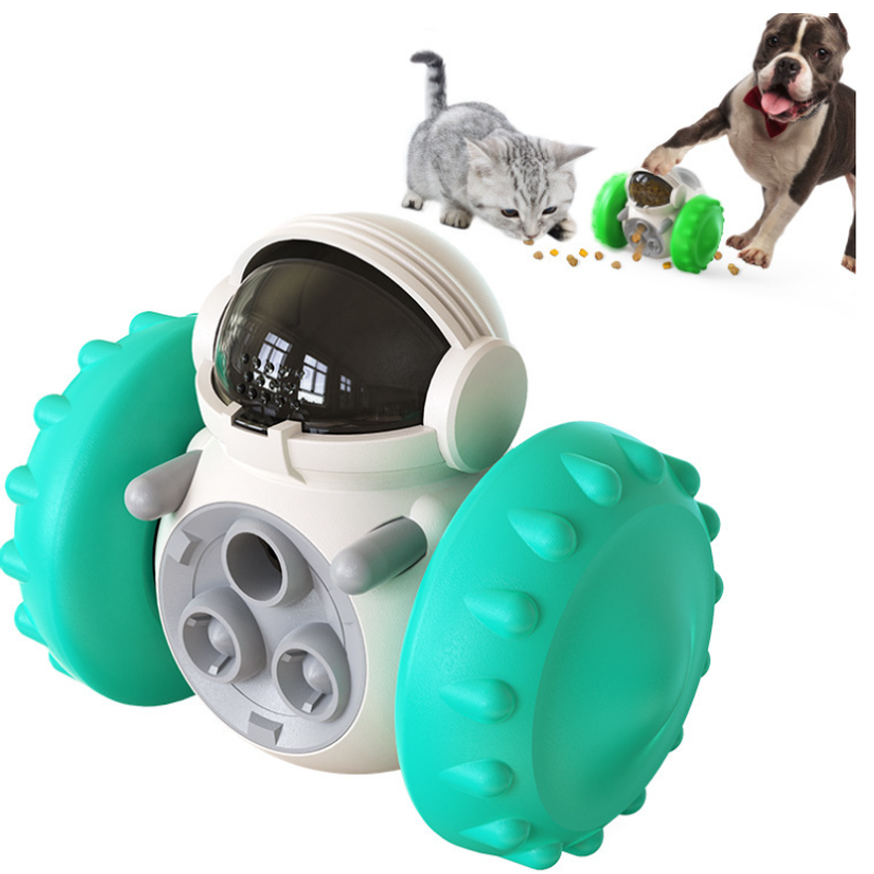 New upgrade toy: intelligent robot tumbler design. Rolling balance system, no electric drive required, it will keep standing no matter how the dog pushes it. Dogs can be rewarded by constantly pushing it, greatly extending pet eating time and fun. When the toy swings back and forth, it can still move without external force, which increases the fun of cats and dogs.