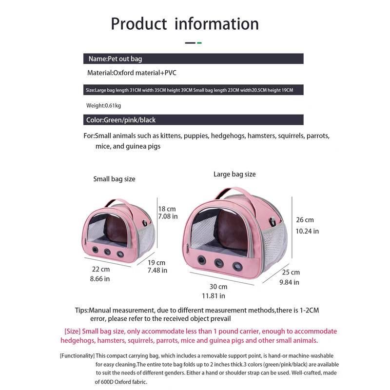 Cat Dog Bird Rabbit Carrier Bag With Thick Cotton Cushion Pet Aviation Backpack Anti-suffocation Portable Travel Bag Pet Dog Bag
