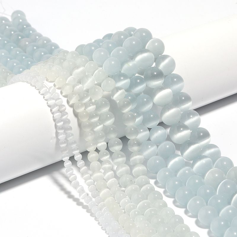 Cat Eye Stone Beads 4 6 8 10 12mm Natural White Round Loose Spacer Beads For Jewelry Making DIY Bracelets Necklace Accessories