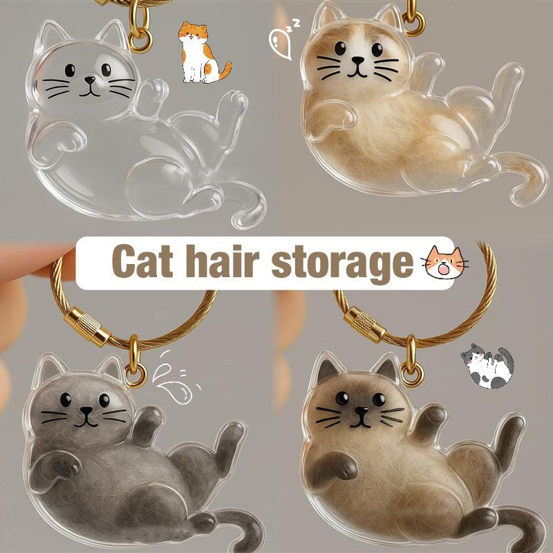 Cat Hair Memorial Storage Keychain Cat Fur Container Pets Cat Fur Collector Capsule Keyring Kitty Hair Hanging Pendants