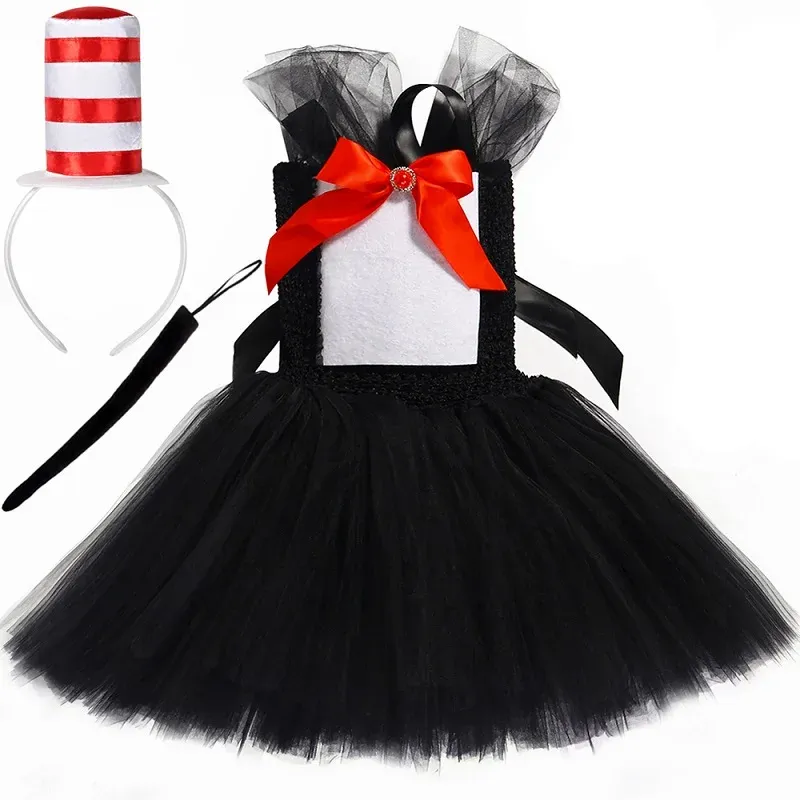 Dr. Seuss Cat in The Hat Tutu Dress Costume for Girls Halloween Carnival Party Fancy Clothes Outfit Kids Black Cat Tulle Dresses