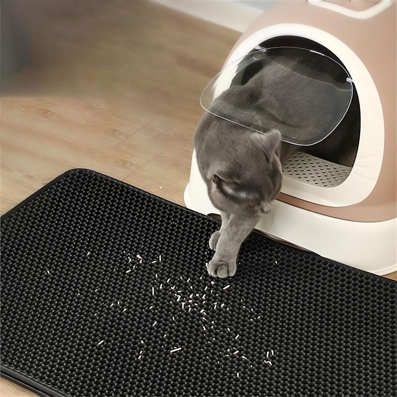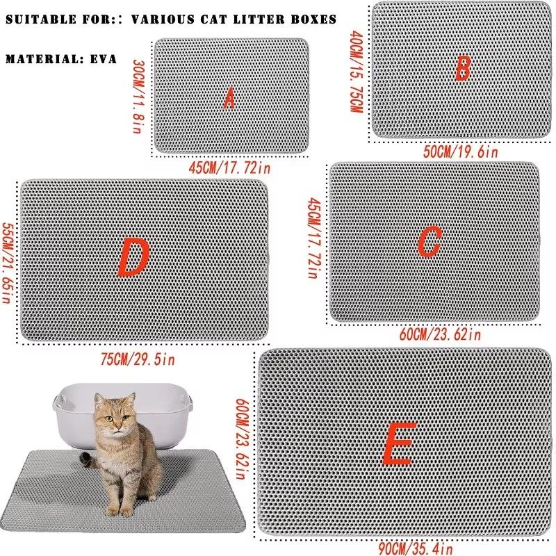 1. It is suitable for more than 95% types of cat litter, the upper layer is through-hole material, cat litter can easily pass through, and the lower layer is waterproof material, cat litter, urine and other dirt can gather here. The cat litter pad is designed with upper and lower layers: the upper layer adopts a hexagonal hole concave and convex design, in addition to preventing cat litter from splashing after falling in, the spherical soft touch can also prevent cats from scratching, and the lower layer is sealed for cats. Sand, the bottom is designed with regular round holes, which is effectively anti-slip to prevent the rampant cat from slipping and getting injured.