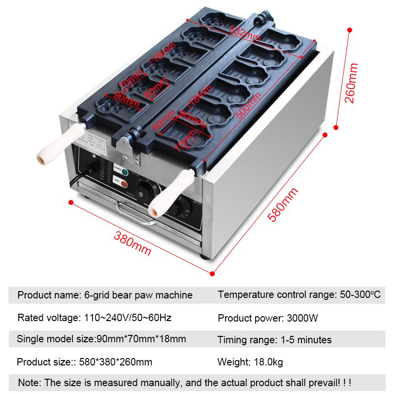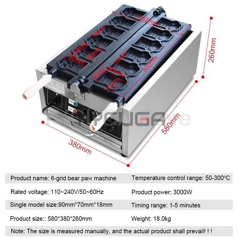 Cat Paw Waffle Maker Machine Electric 6Pcs Cat Bear Tiger Paw Shape Cake Baker Electric Snack Maker Commercial Appliance110/220V