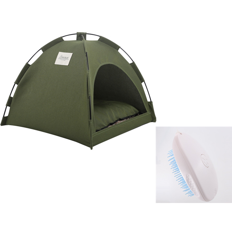 Cat Tent Cooling Mat Dog House Pet Sofa Camping Dog Bed With Cushion For Dog Kennel Indoor Cat Nest Cat Bed Pets Products Military Green set S