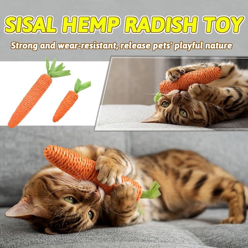 【Paper Rope Design—High-quality and Long-lasting】The carrot cat toys are wrapped with paper ropes and all woven by hand. These high-quality toys are difficult to be damaged by cats and they can be long-lasting toys for cats.