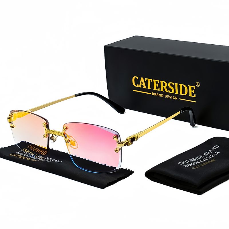 CATERSIDE Punk Rectangle Sunglasses Men Women Luxury Designer Rimless Gradient Lens Metal Sun Glasses For Men Sports 2024 UV400