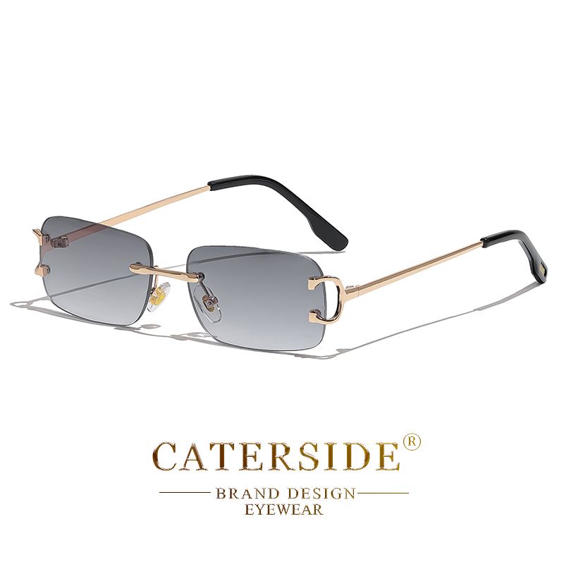 CATERSIDE Rectangular Sunglasses Men Rimless White Copper Small Square Sun Glasses For Women Gradient Lens Outdoor Eyewear UV400