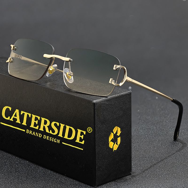CATERSIDE Rectangular Sunglasses Men Rimless White Copper Small Square Sun Glasses For Women Gradient Lens Outdoor Eyewear UV400
