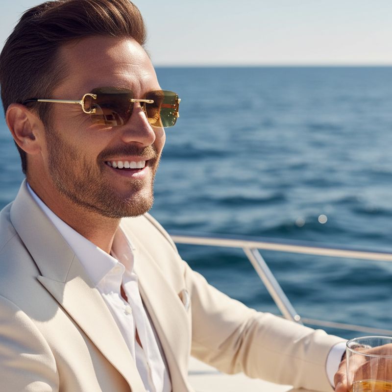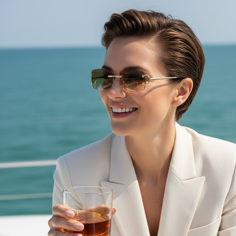 CATERSIDE Rectangular Sunglasses Men Rimless White Copper Small Square Sun Glasses For Women Gradient Lens Outdoor Eyewear UV400