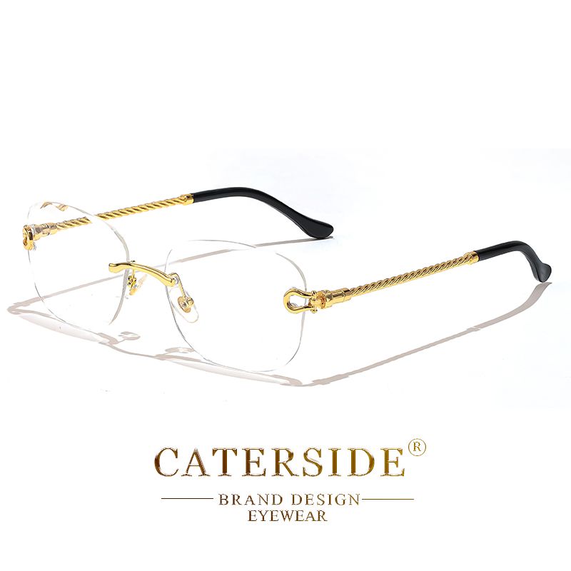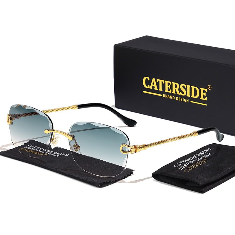 CATERSIDE Retro Fashion Sunglasses Women Men Brand Designer Rimless Gradient Sun Glasses Shades Cutting Lens Ladies Eyeglasses