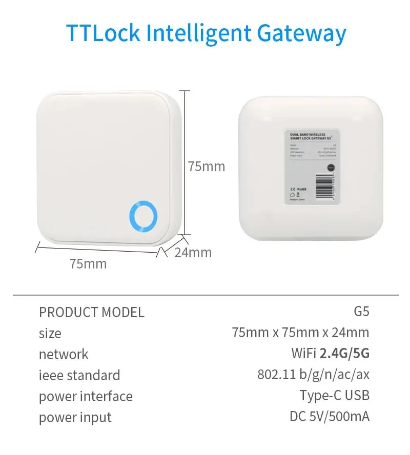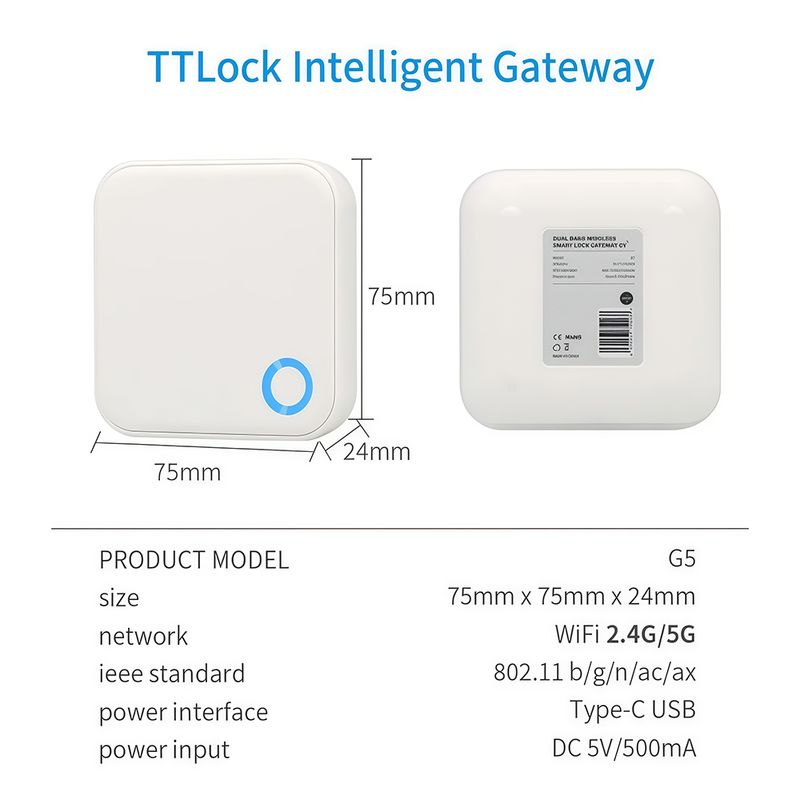TTlock G5 gateway, supports connection to 2.4G/5GWiFi, convenient for smart management of hotels, homestays, etc.