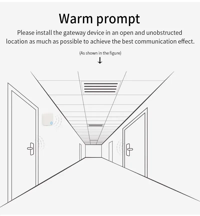 Please install the gateway device in an open and barrier-free location as much as possible to achieve the best communication effect.