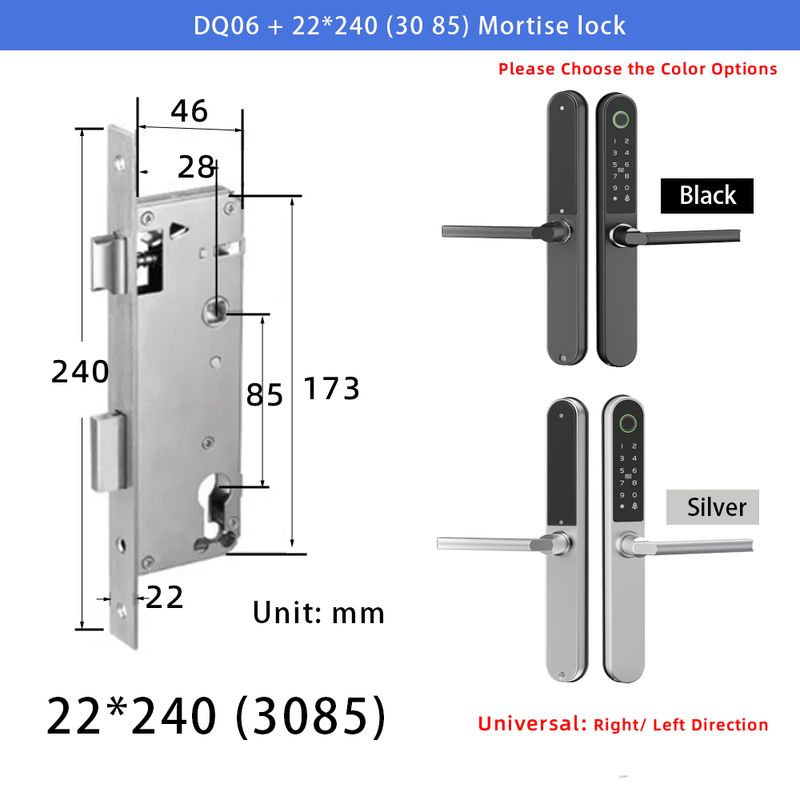 Please refer to the three installation dimensions marked in the image, then measure your door and select the appropriate lock body option.