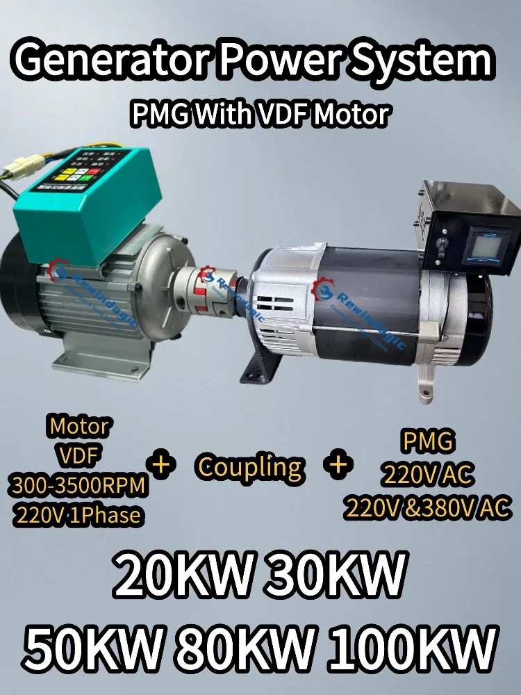 CE 20KW 50KW 80KW 220V Single Phase AlternatorPermanent Magnet Generator With 220V 300-3500RPM Variable Frenquency Drive Motor