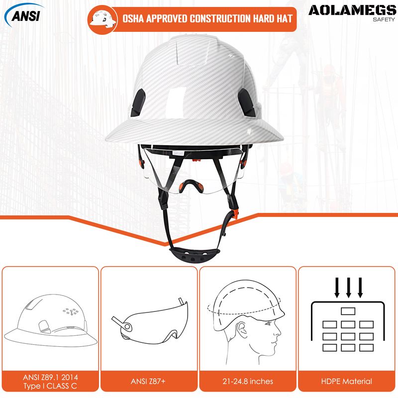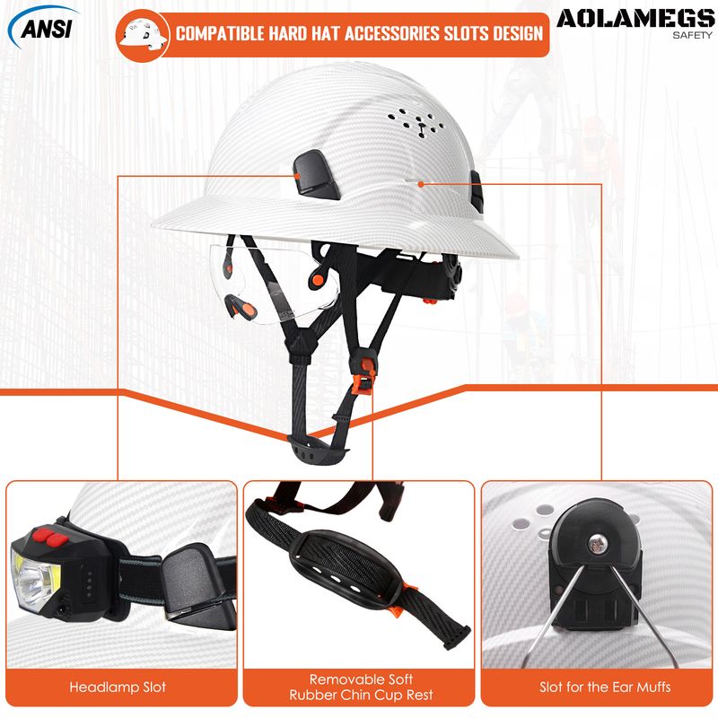 CE Carbon Fiber Full Brim Safety Helmets with Goggles Anti-Collision Construction Hard Hat ANSI Engineer Breathable Work Cap