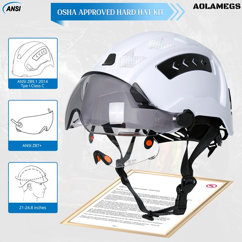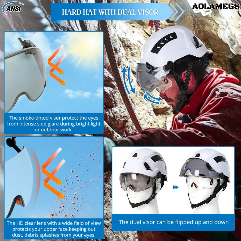 CE Construction Safety Helmet with Double Goggles Built-In Visors Reflective Stickers Hard Hat ANSI Industrial Work Engineer Cap