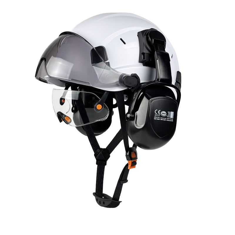 CE Construction Safety Helmet with Double Goggles Earmuffs ABS Hard Hat Vented Hardhats for Industrial Work Head Protection ANSI
