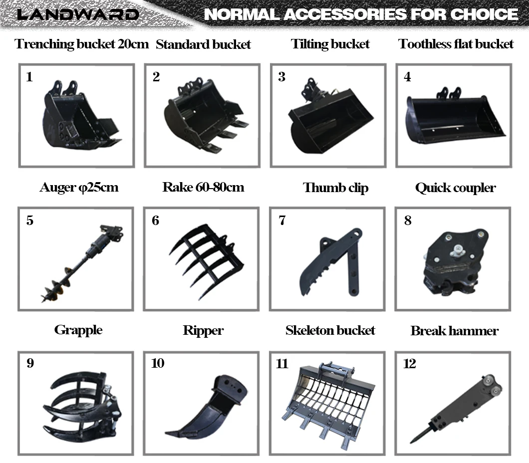 Landward have mini excavators from 1ton- 8tons, if need other model which not showed here, please click and find our professional salesman for more information and the best price.