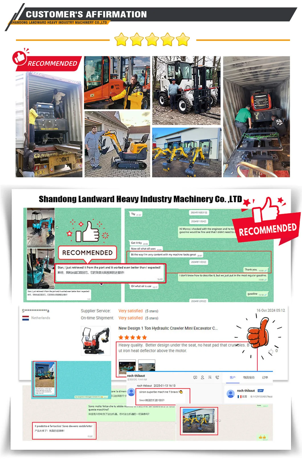 In 2018, we engaged in small machine, like small excavators, mini dumpers, mini wood chippers at the time when the Euro market begin to accept Chinese mini machine.