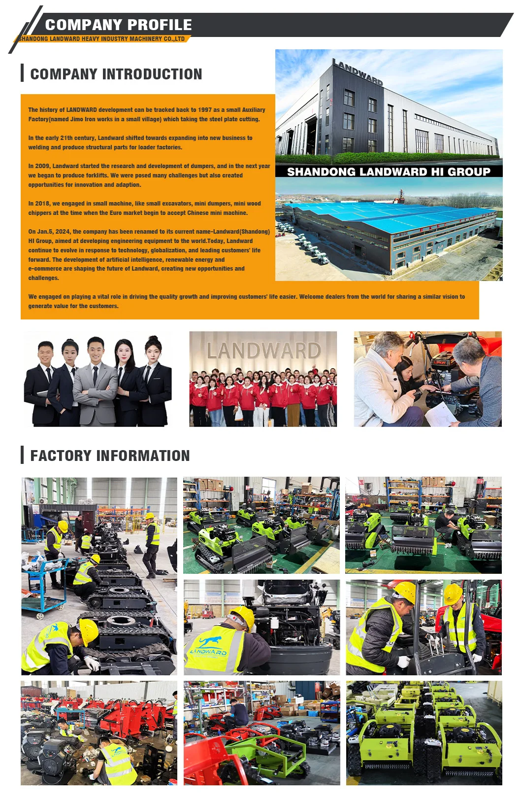 On Jan.5, 2024, the company has been renamed to its current name-Landward(Shandong) HI Group, aimed at developing engineering equipment to the world.