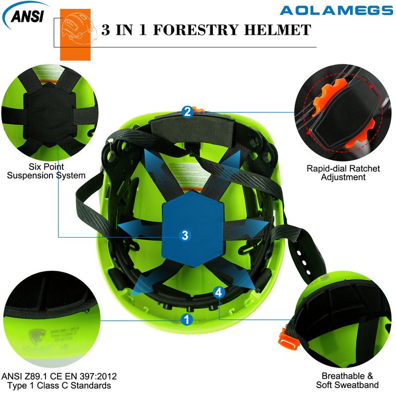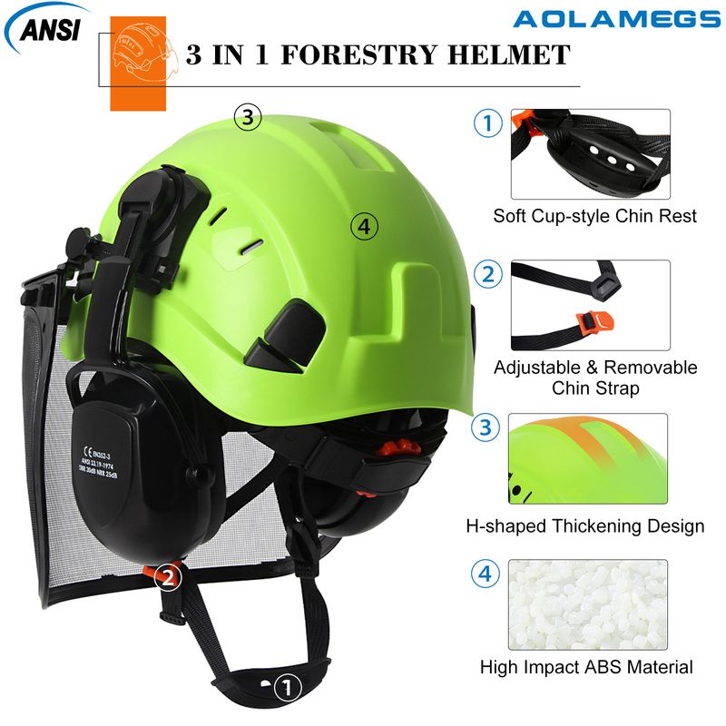 CE Forestry Safety Helmet w/ Earmuffs Face Shield ABS ANSI Logging Industrial Hard Hat 3 in 1 Brushcutter Trimmer Breathable Hat
