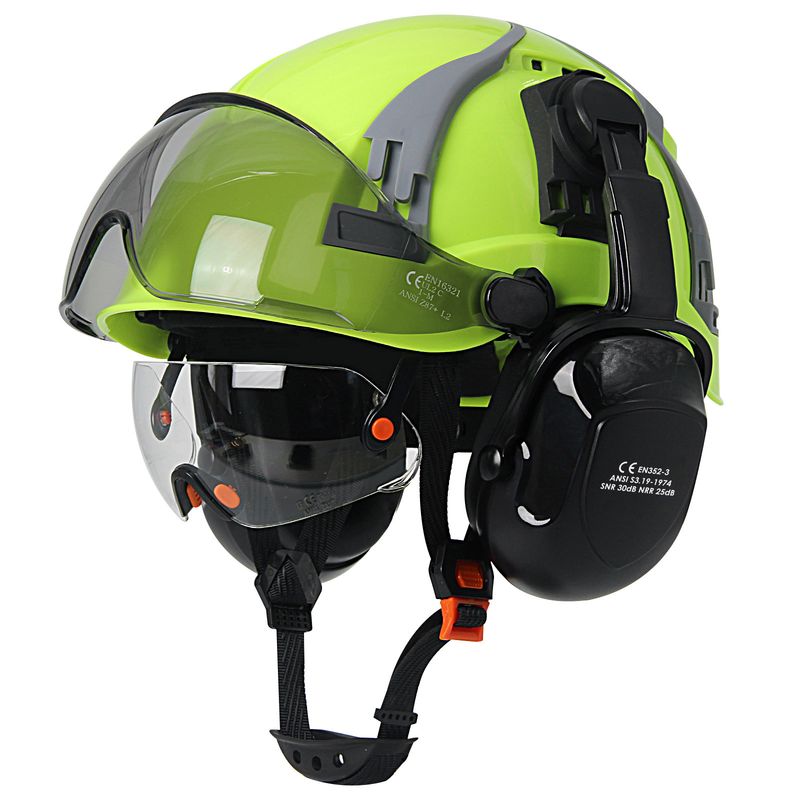 CE Safety Cap w/ Adjustable Vent Slot Visor Built In Goggles Earmuffs ABS Safety Helmet ANSI Construction Engineer Work Hat New