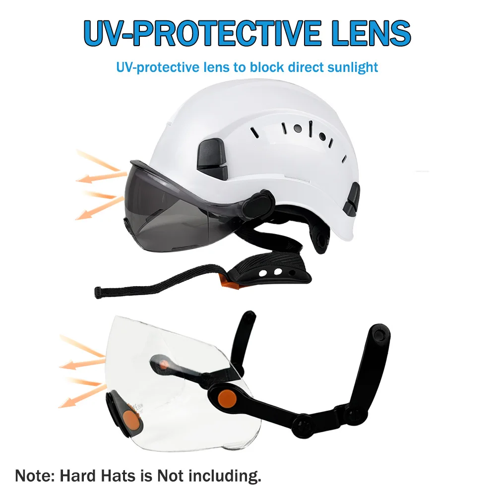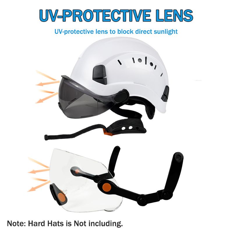 Easy To Install :The replacement Hard Hat Visor can be easily installed on safety hard hat by a screwdriver.When you need to protect eyes while working, just sliding down the visor to right position. When not in use, just slide back to the top of helmet.