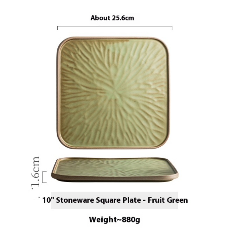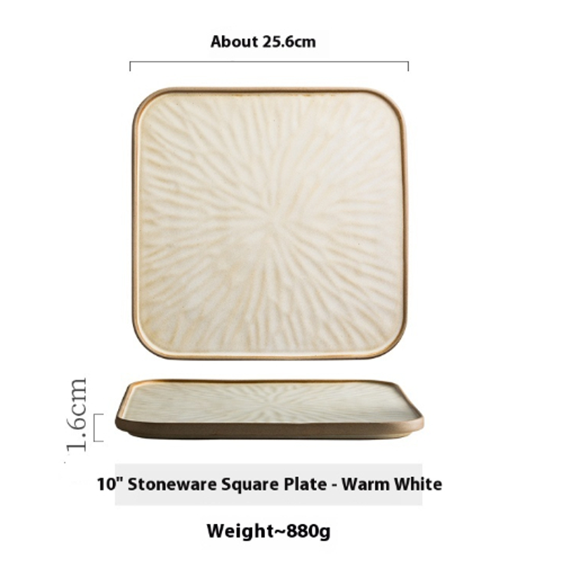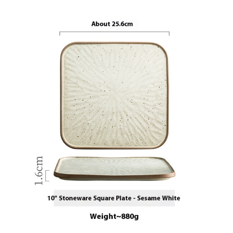Color classification: 10-inch rough pottery square plate - Fruit green, 10-inch rough pottery square plate - warm white, 10-inch rough pottery square plate - Kiln turns black, 10-inch rough pottery square plate - Silver brown, 10-inch rough pottery square plate - Sesame white, 12-inch rough pottery square plate - Sesame White, 12-inch Rough pottery square plate - Kiln turns black, 12-inch rough pottery square plate - Silver brown, 12-inch earthenware square plate. - Sesame white