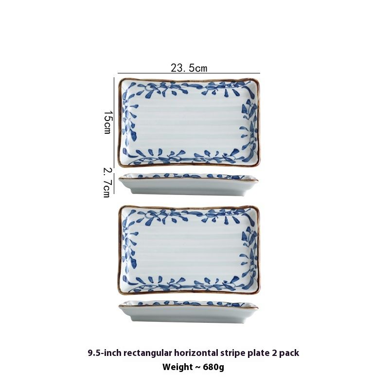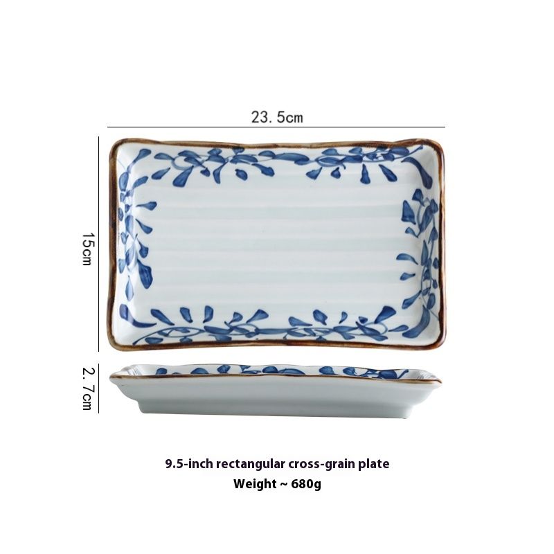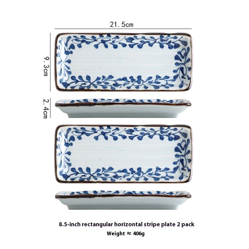 Ceramic Horizontal Pattern Sushi Kebabs Long Plate Restaurant Commercial Side Dish Tableware 8.5 inches 1pcs